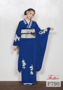 シンプル 青色振袖|余白を楽しむ洗練ミニマル成人式コーデ【F790】