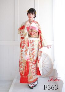 4. 古典白振袖|赤と金が映える上品で華やかな正統派成人式スタイル【熊本】F363