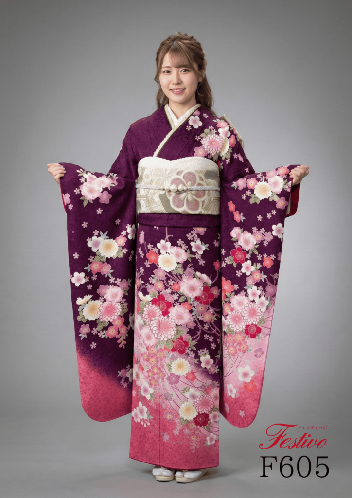 古典 紫色振袖|桜と菊が咲き誇る上品華やか成人式コーデ【熊本】F605