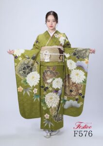 古典 緑振袖|菊柄が華やぐ上品で格式ある成人式スタイル【熊本】F576