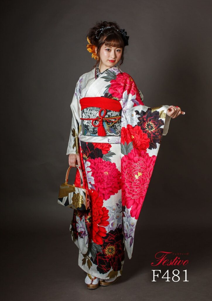 白振袖の粋系コーデ|赤牡丹が映える大胆で華やかな成人式スタイル【熊本】F481