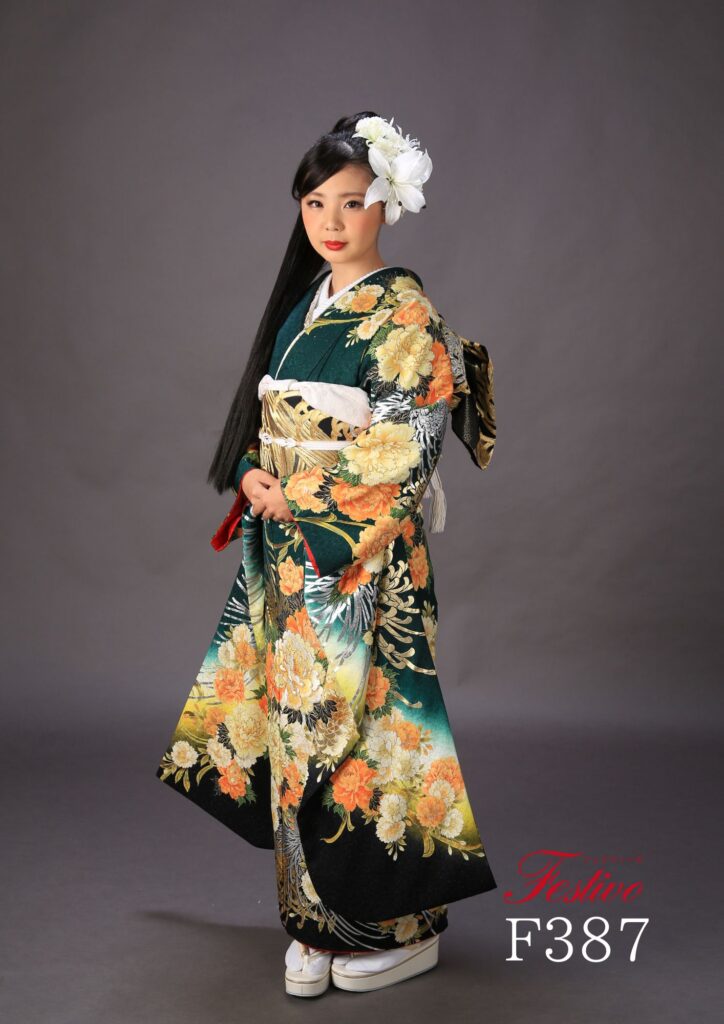 粋な緑振袖|深緑×金彩が映える大人クールな成人式コーデ【熊本】F387
