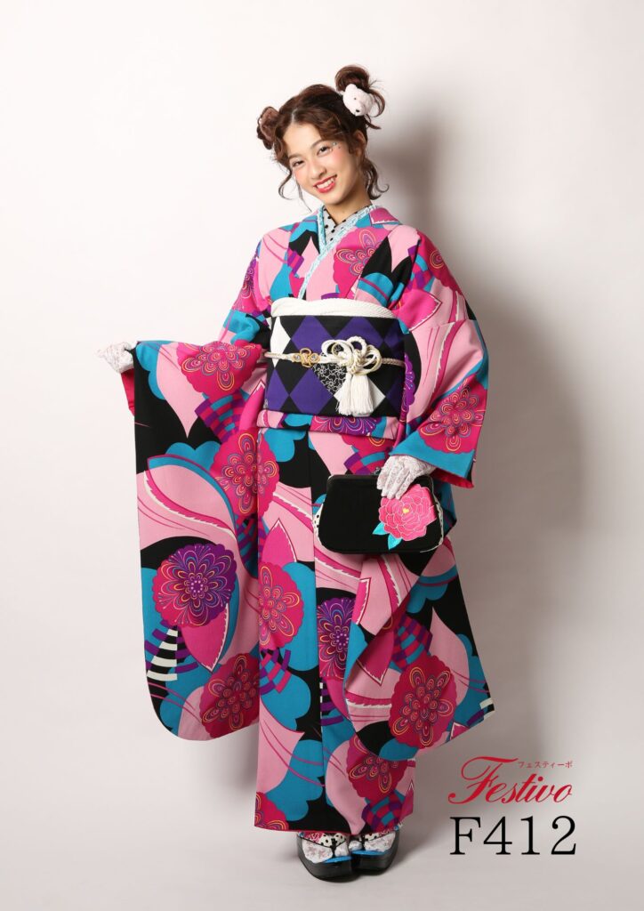 レトロモダンピンク振袖|大胆柄で魅せる個性派成人式コーデ【熊本】F412