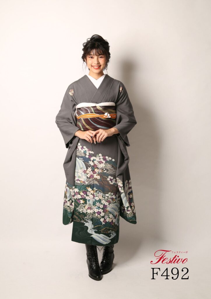 ヴィンテージグレー振袖|上品で個性派な大人成人式コーデ【熊本】F492