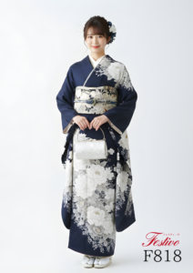 深みのある紺色を基調に、白を中心とした古典花柄を描いた上品な古典振袖。落ち着いた色合いの中に凛とした華やかさがあり、成人式でも大人っぽく洗練された印象を与えてくれます。甘さを抑えた配色は、可愛すぎる振袖が苦手な方にもおすすめ。格式ある古典柄とシックな紺色の組み合わせで、写真映え・会場映えのどちらも叶う一着です。