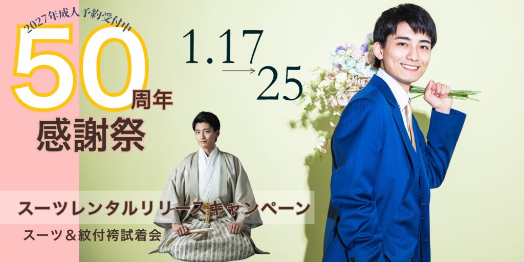 50周年感謝祭 成人式スーツレンタルリリースキャンペーン開催中